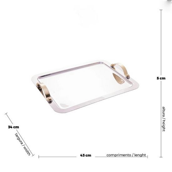 Home » Acessórios de decoração » Bandeja Travessa Wolff Alça Dourada Inox m 45 cm X 30