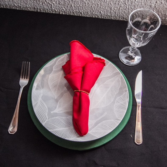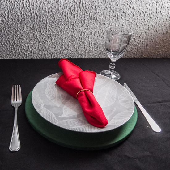 KIT Natal Stylo Mesa Posta 7 peças : SOUSPLAT + Prato + Garfo + Faca + Taça Stylo + Guardanapo e Porta Guardanapo