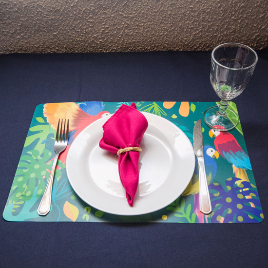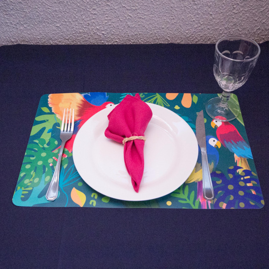 KIT Tropicália 7 peças : jogo americano+ Prato + Garfo + Faca + TAÇA + Guardanapo e Porta Guardanapo